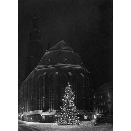 Stretched Canvas Art - Germany: Heidelberg, C1920. /Nchristmas Tree In Front Of The Church Of The Holy Spirit In Heidelberg, Germany. Photograph, C1920. - Medium 18 x 24 inch Wall Art Decor Size.