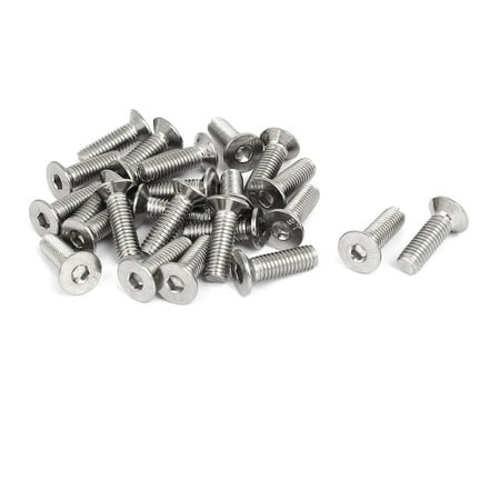 <ul> <li>Head Style: Countersunk/Flat Head; Material: 304 Stainless Steel; Product Name: Flat Head Hex Socket Screw</li> <li>Weight: 231g; Main Color: Silver Tone; Thread Pitch: 1.25mm</li> <li>Thread Style: Fully Thread; Head Size: 14 x 5mm/0.55'' x 0.2''(D*H); Hex Socket Width: 5mm/0.2"</li> <li>Overall Length: 25mm/1''; Model: DIN7991</li> </ul>