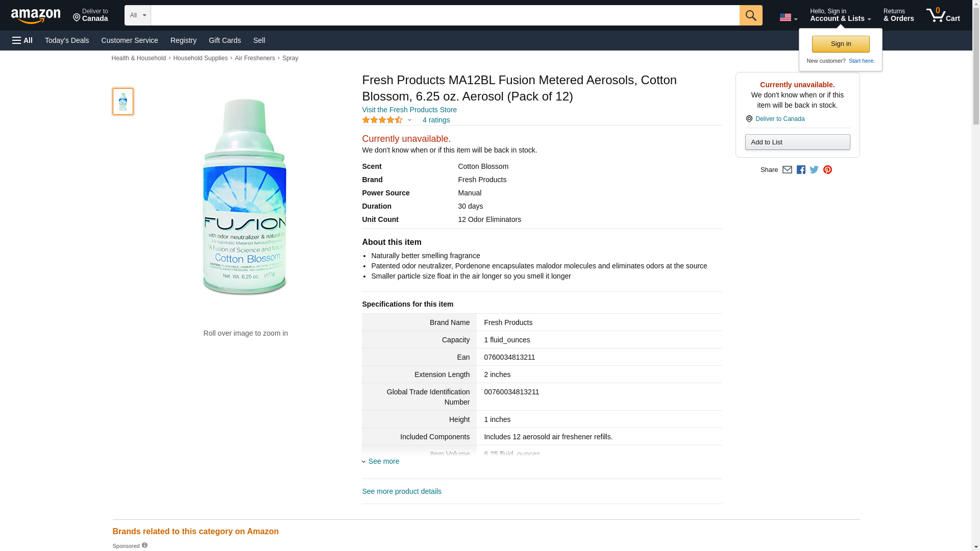 Fresh Products Ma12bl Fusion Metered Aerosols, Cotton Blossom, 6.25 Oz Aerosol, 12/Carton