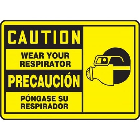 Accuform SBMPPE417MVA Aluminum Sign, Legend "Caution WEAR Your Respirator/PRECAUCION PONGASE SU RESPIRADOR", 10" Length x 14" Width, Black on Yellow
