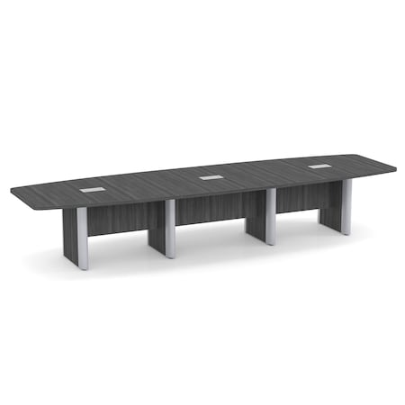 OfficeSource 14' Long Boat-Shaped Conference Table with Elliptical Base, Coastal Gray Wood Finish, Durable and Structurally Sound