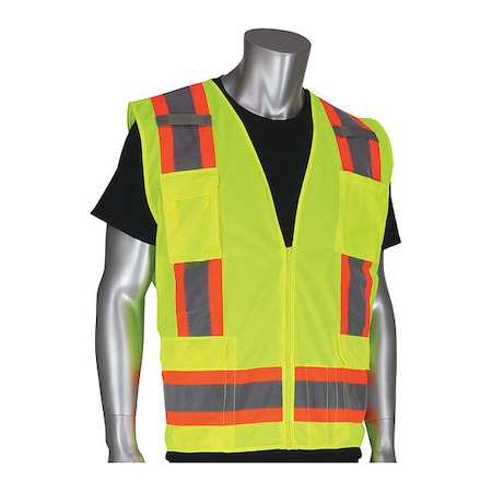 ANSI Type R Class 2 Two-Tone Eleven Pocket Surveyors Vest with Solid Front and Mesh Back 302-0500-YEL/M, (50)