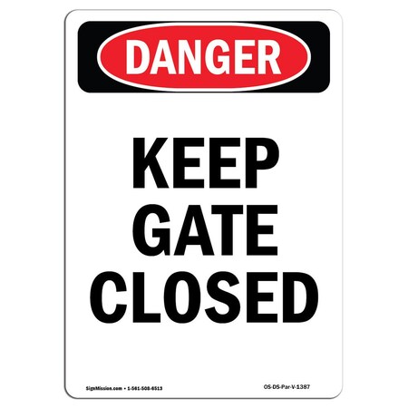 OSHA Danger Sign, Portrait Keep Gate Closed, 10in X 7in Decal