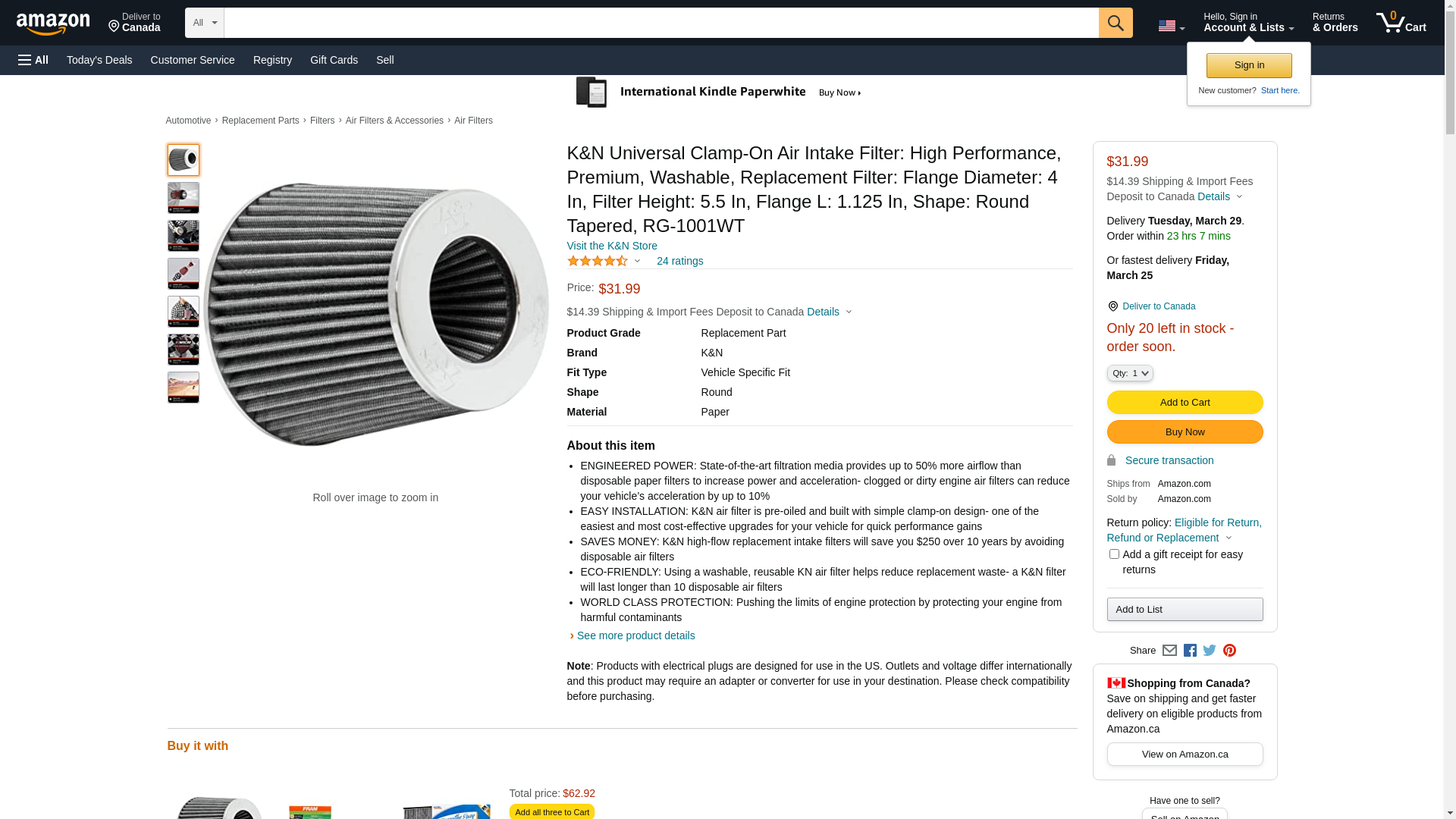 K&N Universal Clamp-On Air Intake Filter: High Performance, Premium, Washable, Replacement Filter: Flange Diameter: 4 In, Filter Height: 5.5 In, Flange L: 1.125 In, Shape: Round Tapered, RG-1001WT