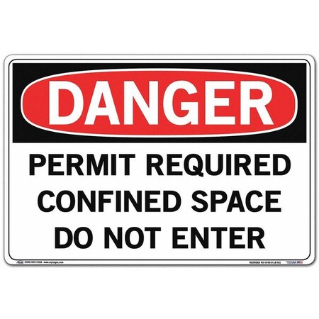 Vestil SI-D-60-D-LB-011 PERMIT REQUIRED CONFINED SPACE DO NOT ENTER Danger Label, Vinyl, 0.011" Overall Size, 18.5" W x 12.5" H