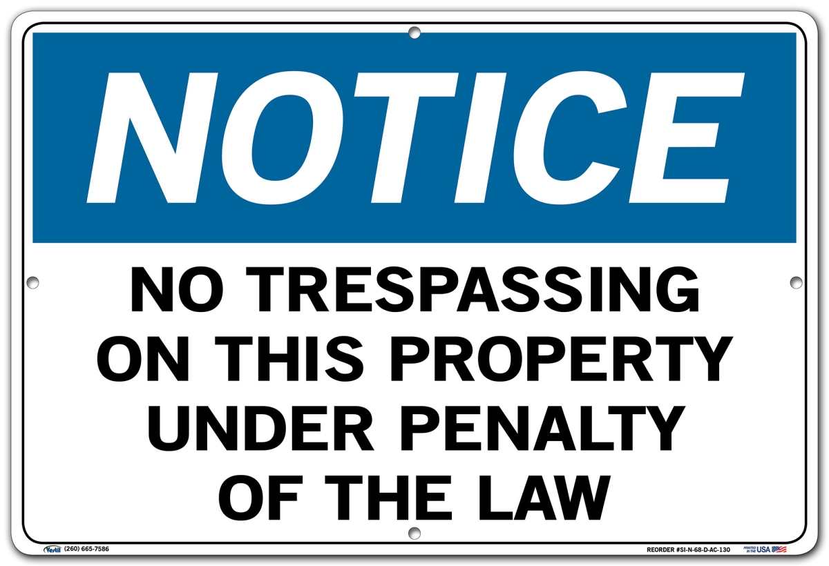 Vestil SI-N-68-D-AC-130 Notice Sign Aluminum Composite .130" Overall Size No Trespassing on This Property Under Penalty of The Law , 12.5" Height, 18.5" Wide, 0.13" Length