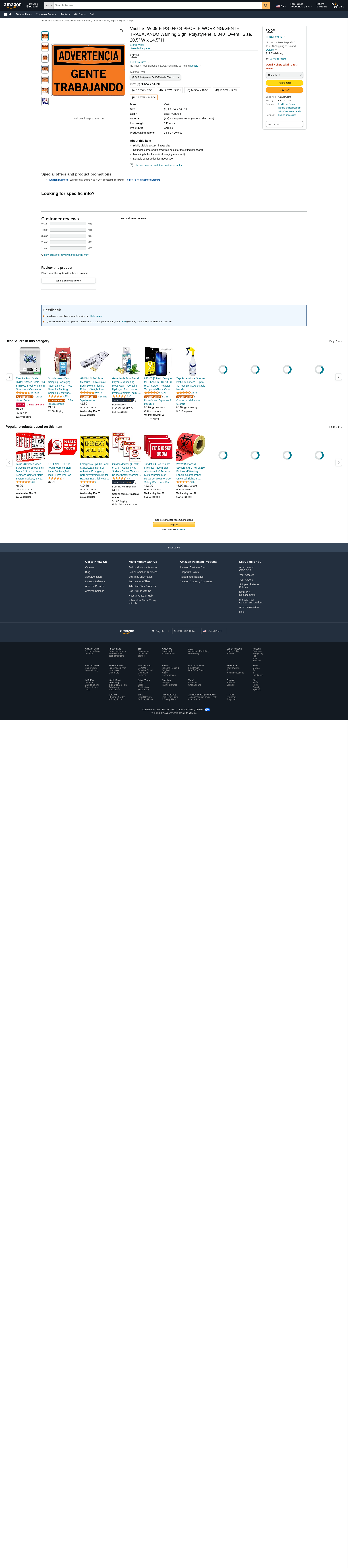 Vestil SI-W-09-E-PS-040-S PEOPLE WORKING/GENTE TRABAJANDO Warning Sign, Polystyrene, 0.040" Overall Size, 20.5" W x 14.5" H