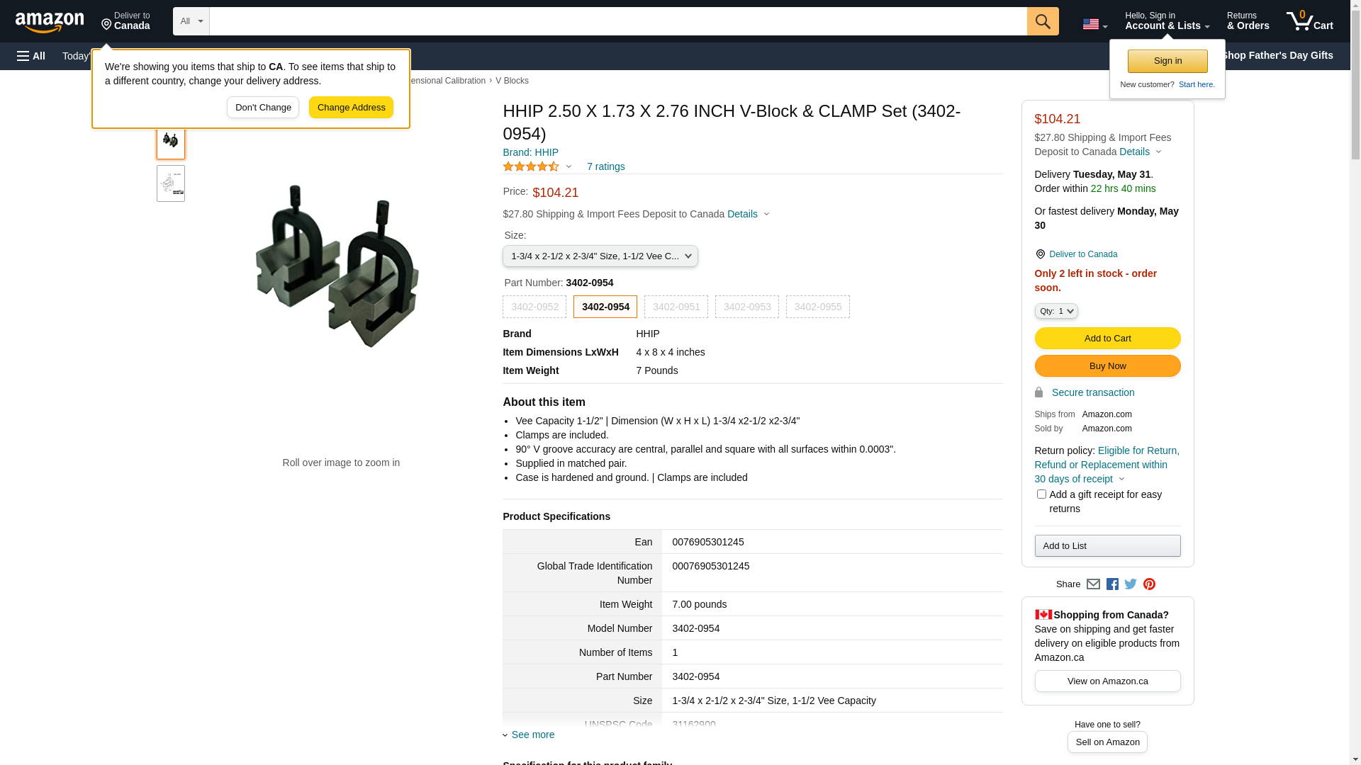 HHIP 2.50 X 1.73 X 2.76 INCH V-Block & CLAMP Set (3402-0954)