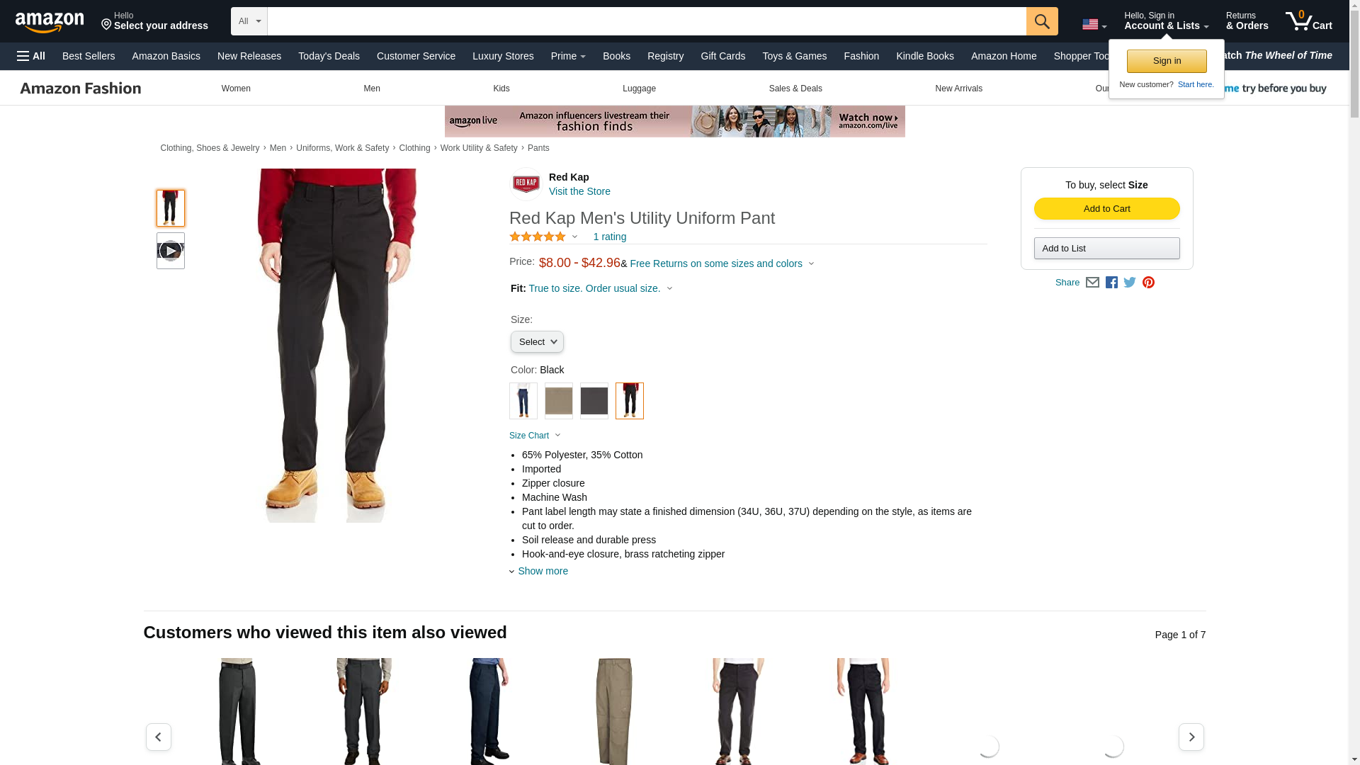 Red Kap Men's Utility Uniform Pant, Black, 38x30