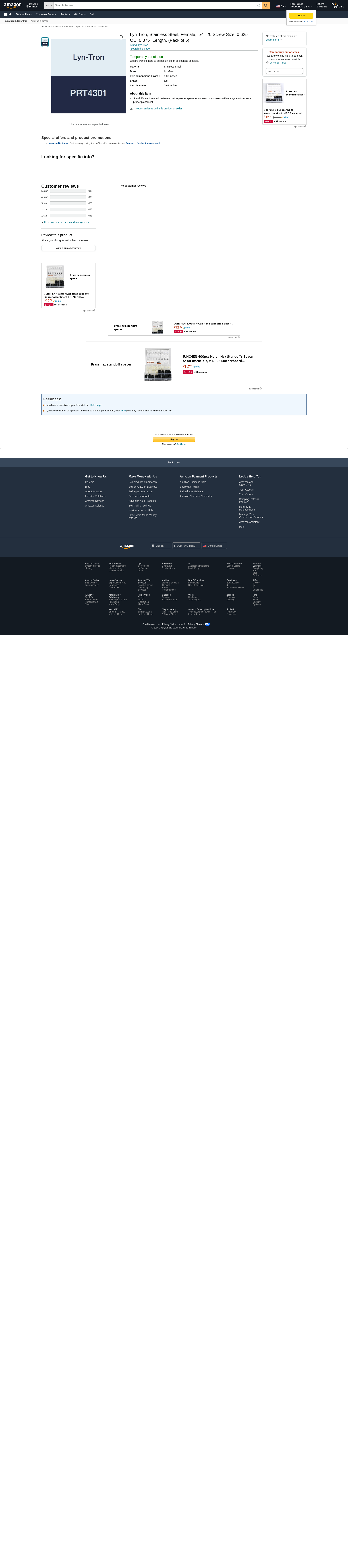 Lyn-Tron, Stainless Steel, Female, 1/4"-20 Screw Size, 0.625" OD, 0.375" Length, (Pack of 5)