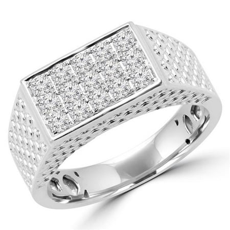 <p>Diamonds are a girl's best friend, but they can also be a man's best buddy. Let that special man in your life enjoy the luxuries of a diamond signet ring. He deserves to shine on special occasions and every day. He'll make a statement wearing a masculine signet ring glistening with gorgeous white diamonds in an 18K gold setting. What an impressive ring to wear on the big day, and every day thereafter. From boardroom to weekend cottage, this is a gorgeous ring he'll wear with pride. </p> <p>This attractive 2/3 CTW Pave Diamond Men's Signet Ring Wedding Band in 18K White Gold is beautifully crafted in 18K white gold. With beautiful detailing all over the band and a bold rectangle framing 15 pave set diamonds, this stunning signet ring is certain to impress. The diamonds have a carat total weight of 0.68 with a clarity rating of VS2-SI1, and color range of F-G. </p> <b>Features</b> <ul> <li>Masculine signet ring in 18K white gold</li> <li>15 pave set diamonds</li> <li>Stylish pattern is bold and impressive</li> </ul> <b>Specifications</b> <ul> <p><b>Stone Information</b></p> </ul> <ul> <li><b>Number of Stones:</b> 15</li> <li><b>Carat Total Weight (ctw):</b> 0.68</li> <li><b>Stone Type:</b> Diamond</li> <li><b>Stone Shape:</b> Round</li> <li><b>Cut:</b> Very Good</li> <li><b>Carat Weight:</b> 0.68</li> <li><b>Color:</b> F-G</li> <li><b>Clarity:</b> VS2-SI1</li> </ul> <ul> <p><b>Setting Information</b></p> </ul> <ul> <li><b>Metal:</b> 18K Gold</li> <li><b>Metal Weight:</b> 8.6 Grams</li> <li><b>Color:</b> White</li> <li><b>Finish:</b> Polished</li> <li><b>Setting Type:</b> Prong</li> <li><b>Ring Size:</b> 6.25</li> </ul>- SKU: MJTD31388