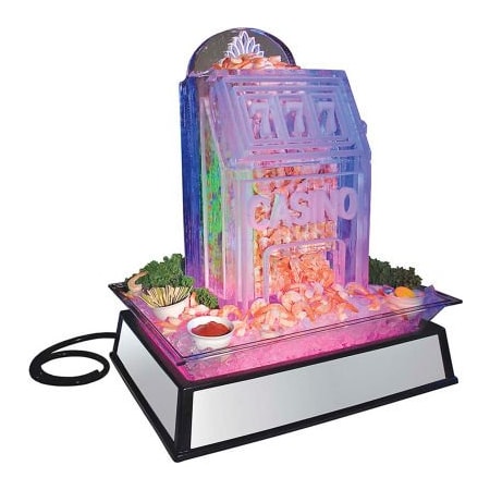 Model: IP101-110 <br /> <br /> (110 Volt) Small Rectangle Ice Carving Pedestals - perfect for ice sculptures or for any other iced presentation. Seamless, molded, mirror paneled base elevates & illuminates the ice sculptures - now with LED lighting! <br /> <br /> Product Features:<br /> Great to display vertical ice sculptures weighing up to 400lbs/180kg <br /> Industry's strongest, high density, chip resistant clear PETG pan for durability <br /> Dimensions: 19"W x 27"D x 10"H