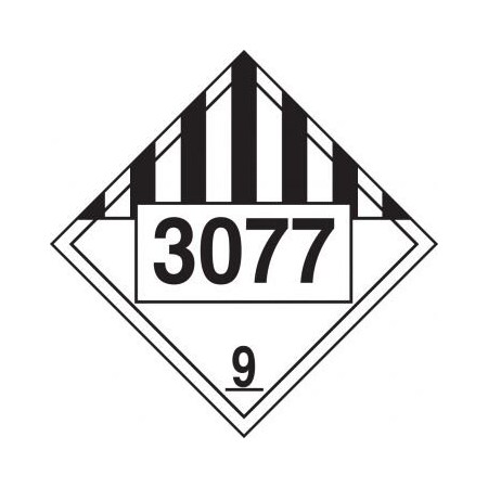 Accuform Signs MPL793VS1 Adhesive Vinyl 4-Digit DOT Placard, Hazard Class 9, Legend "3077" (Environmental Hazard-Solid), 10-3/4" Length x 10-3/4" Width x 0.004" Thickness, Black on White