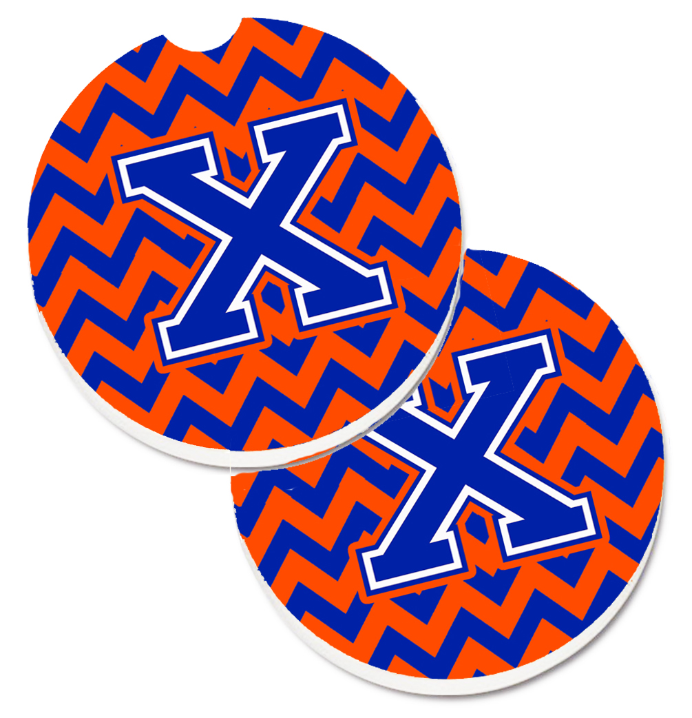 Carolines Treasures CJ1044-XCARC Letter X Chevron Orange & Blue Set of 2 Cup Holder Car Coaster