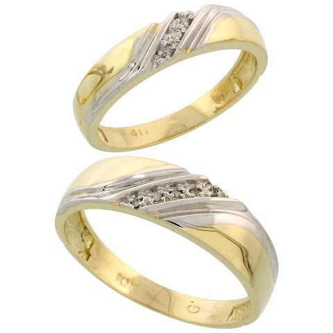 World Jewels 10K Yellow Gold Ladies 0.05 CT. Brilliant Cut Diamond Wedding Ring Set, Size 8