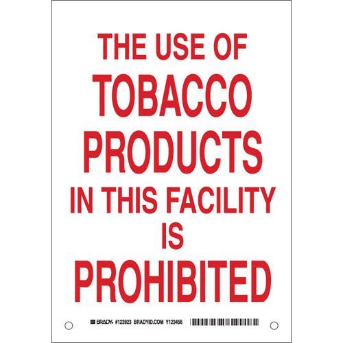 Brady 123924 The Use Of Tobacco Products In This Facility Is Prohibited Sign - Non-reflective Aluminum - Red on White - 14 x 10