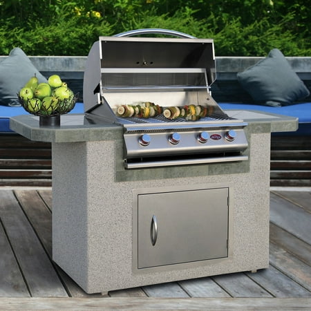 <p>The <strong>Cal Flame 6 ft. Stucco And Tile Grill Island With 4 Burner Gas Grill</strong> elevates backyard barbecues to an art form. This professional-quality cooking station showcases a beautifully designed base made from durable Stony Creek Ameristone Stucco that?s perfect for creating a resort style look in your own backyard. The base houses a stainless steel door for accessing the LP tank (sold separately) and supports not only the state-of-the-art, center mounted grill, but a generous countertop with shelves to each side made of two-tone porcelain tile, giving you ample work space in an elegant way. The grill itself boasts up to 60,000 BTUs of steak-searing power and its removable V-grates add up to 800 sq. in. of surface area for your burgers, brats, ribs, and more. </p> <br /> <p><strong>Additional Features</strong></p> <ul> <li>Lip guards on all burners prevent clogging</li> <li>60,000 BTUs overall</li> <li>Compatible with sear zone or smoke tray</li> <li>Exclusive heavy-duty Cal Flame knobs</li> <li>Front splash guard with vent</li> <li>Flavor bar</li> <li>Full-width dual-position warming rack</li> <li>Full-width drip tray</li> <li>Built-in thermometer</li> <li>1.75 in. umbrella hole (umbrella not included)</li> </ul> <p></p> <br /> <p><strong>About Cal Flame</strong><br />Cal Flame was founded in 2000 and has been building award-winning customized grill solutions ever since. This complete line of 304 stainless steel grills, accessories, fire pits, and more works seamlessly together to provide a chef-level experience in your backyard. They're designed with experience and built for reliability, and can be built into a custom island or dropped into a movable grill cart. Your configuration is entirely up to you ? go ahead, design the outdoor kitchen of your dreams!</p>
