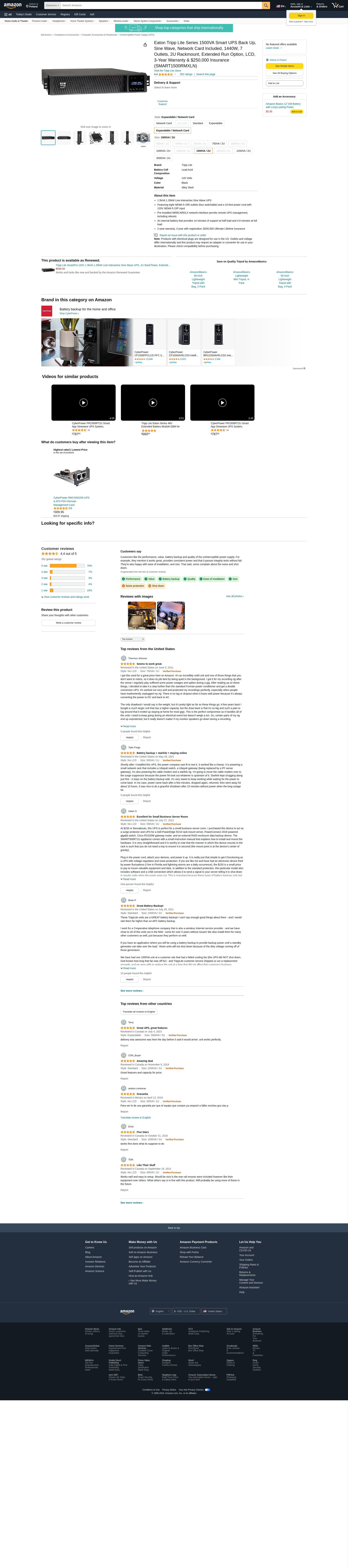 Buy Eaton Tripp Lite Series 1500VA Smart UPS Back Up, Sine Wave, Network Card Included, 1440W, 7 Outlets, 2U Rackmount, Extended Run Option, LCD, 3-Year Warranty & $250,000 Insurance (SMART1500RMXLN): Uninterruptible Power Supply (UPS) - Amazon.com ? FREE DELIVERY possible on eligible purchases