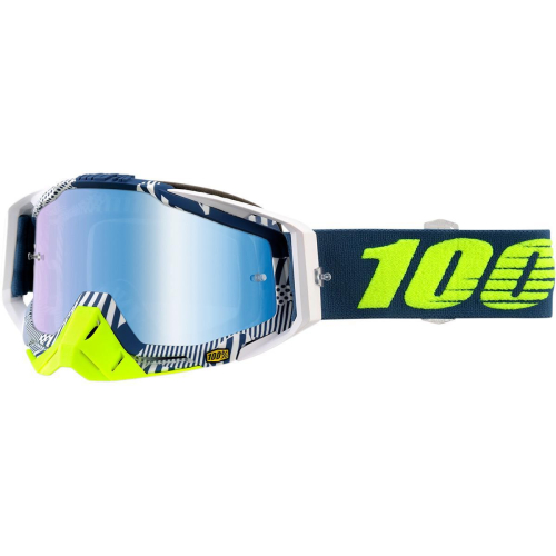 Racecraft Goggles (50110-224-02) by 100%. Style: Eclipse. Lens Color: Mirror Blue. The Racecraft represents 100% Commitment to create an enhanced user experience, by providing racers with a higher level of functionality and accurate vision. The synthesis of precision engineering and minimalistic design results in a premium goggle that performs as great as it looks.<br><br>Nine-pin Lens Retention System Is The Highest Number Of Retention Points In The Industry And Ensures A Secure Fit <br>45mm Wide, Silicone-coated Strap Eliminates Slippage <br>Patent Pending Technology Channels Air Into The Foam, Aiding In Moisture Management <br>Mirrored Lens Models Include A Stack Of Standard Tear-offs, Extra Clear Lens And Sublimated Microfiber Bag <br>Clear-lens Models Include A Stack Of Standard Tear-offs And Sublimated Microfiber Bag <br>Designed To Help You Be The First On The Track <br>Will Provide Maximum Comfort While Racing <br>Overwhelming Quality And Exceptional Longevity <br>