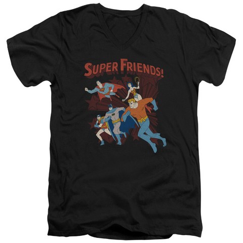 Trevco Dc-Super Running - Short Sleeve Adult 30-1 Tee V-Neck - Black, Extra Large