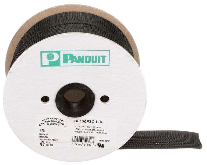 Panduit SE150PSC-LR0 Fray Resistant Braided Expandable Sleeving, Polyethylene Terephthalate, Black (50-Foot)