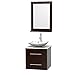 Wyndham Collection Centra 24 inch Single Bathroom Vanity in Espresso, White Man-Made Stone Countertop, Arista White Carrera Marble Sink, and 24 inch Mirror
