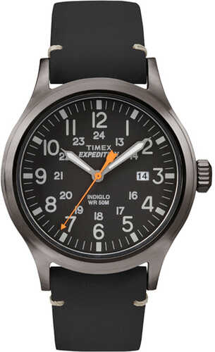 Timex Men's Expedition Scout 40mm Watch – Gray Case Black Dial with Black Genuine Leather Strap