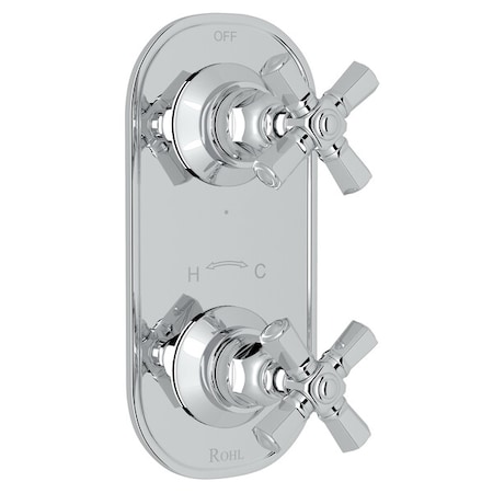 ROHL A4564XMAPC SAN GIOVANNI TRIM FOR 1/2 INCH THERMOSTATIC/DIVERTER CONTROL ROUGH VALVE, CROSS HANDLES, POLISHED CHROME