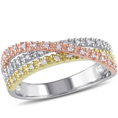 <br /> <b>Miabella 1/4 Carat T.W. Diamond Three-Tone Sterling Silver Cross-Over Anniversary Ring:</b> <ul> <li>Crafted in Three-Tone Sterling Silver</li> <li>1/4 ct. t.w.</li> <li>Diamond color: H-I</li> <li>Diamond clarity: I3</li> <li>Buttercup-set stones</li> </ul> <p>Every piece of Walmart jewelry passes rigorous inspection at our Quality Assurance labs. So you can buy with confidence ? guaranteed. <spanclass=text2bold> <a href="http://learn.walmart.com/Beauty/Articles/Jewelry_Quality_Guarantee/20636/">Learn More</a> <br /> <br /> <a href="http://learn.walmart.com/Beauty/Articles/Diamond_buying_basics/19692/">Learn about diamonds</a>, including the 4 C's ? Color, Cut, Clarity and Carat Weight. </spanclass=text2bold></p>