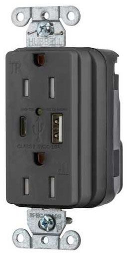 Hubbell Wiring Devices Usb Chg Snap 15A125V Dup 5A Port Ac, Bk - SNAP15UACBK
