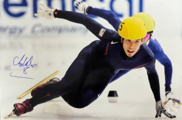 Athlon Sports CTBL-029092 12 x 18 in. Apolo Anton Ohno Signed Us Olympic World Champion Speed Skater Autograph Photo - J