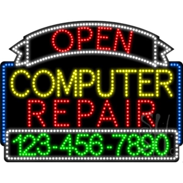 Everything Neon L100-5631 24 x 31 x 1 in. Computer Repair Open with Phone Number Animated LED Sign - Yellow, Red & W