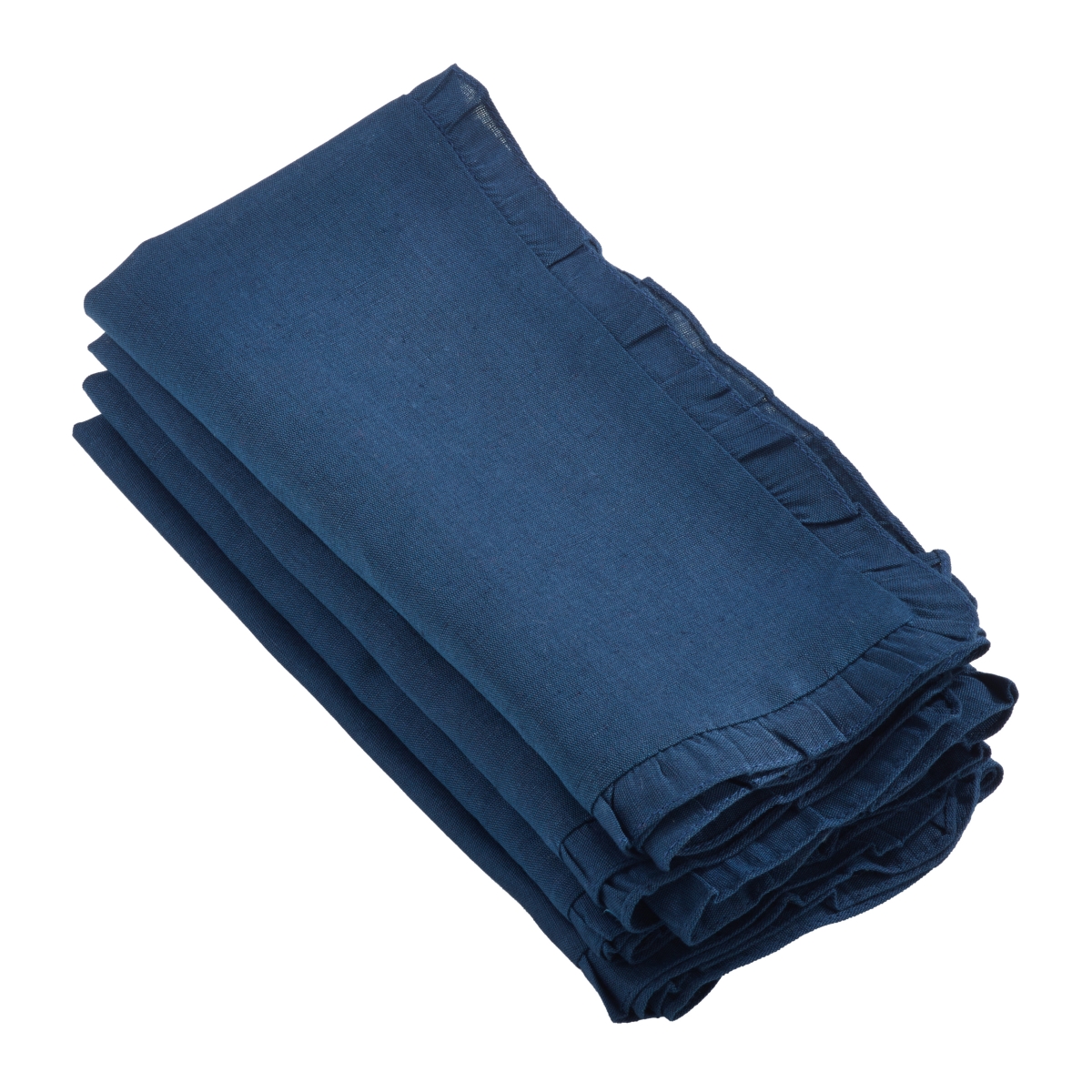 SARO 635.NB20S 20 in. Square Melina Ruffled Design Dinner Napkin Navy Blue - Set of 4