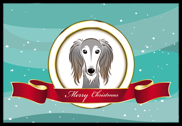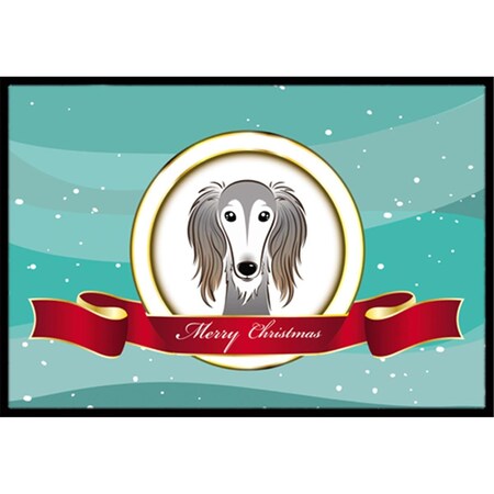 Caroline's Treasures BB1539JMAT Saluki Merry Christmas Doormat 24x36 Front Door Mat Indoor Outdoor Rugs for Entryway, Non Slip Washable Low Pile, 24H X 36W