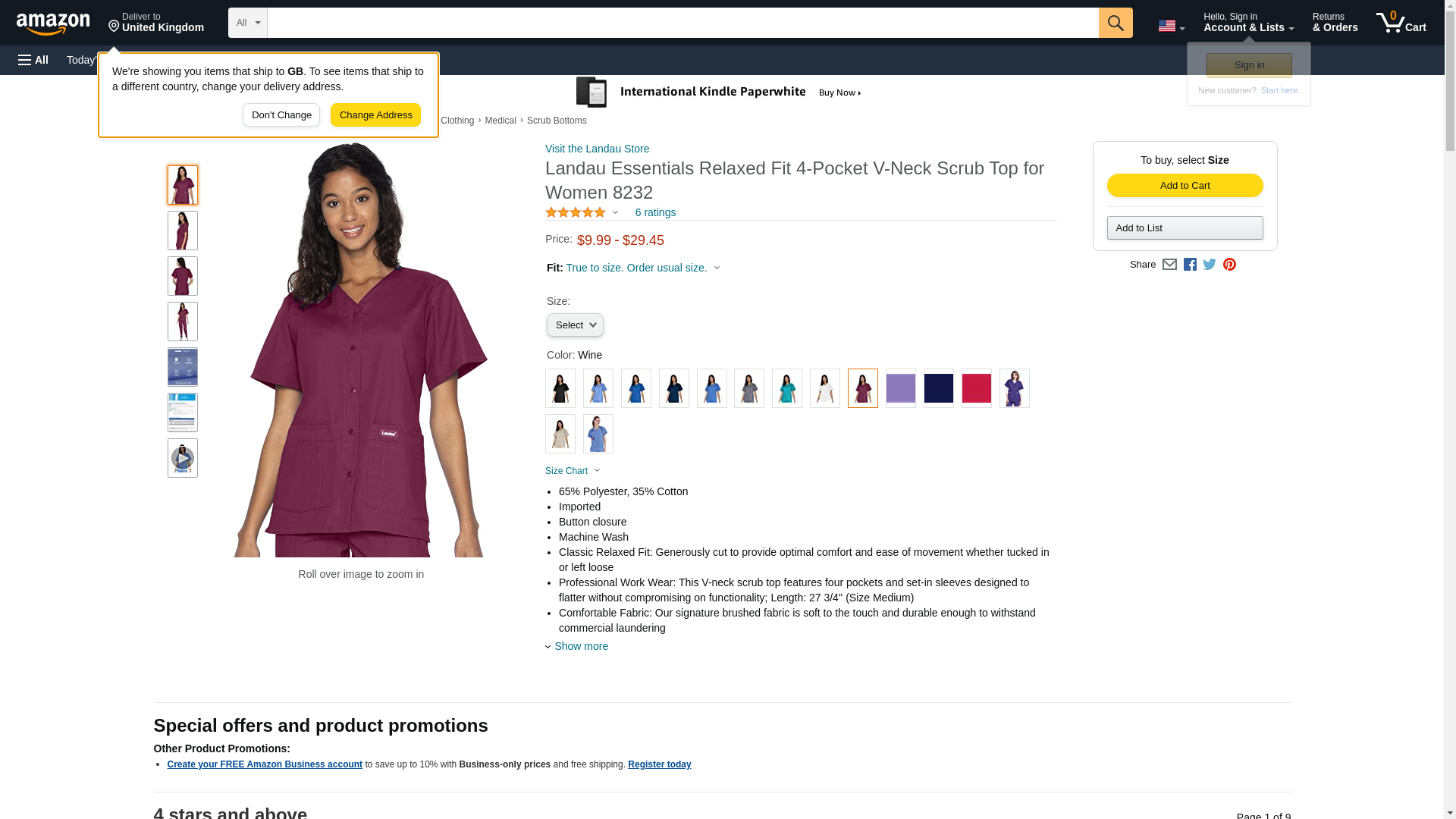 Landau 8232-RWP-MED - SCRUB TOP V 4 PKT SNAP FR - CIA Medical