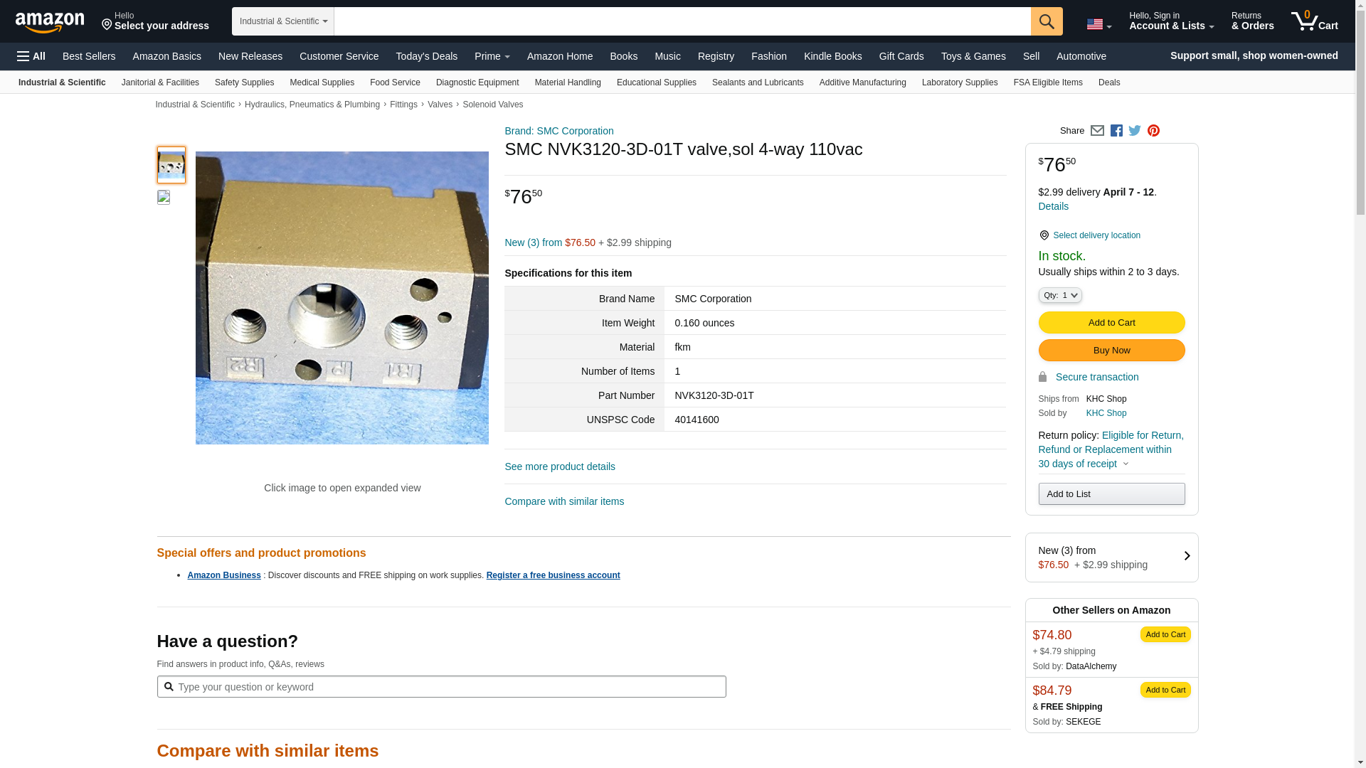 | smcpneumatics.com | NVK3120-3D-01T | 1 | 112 | 1 | 1 @ $43.60 |