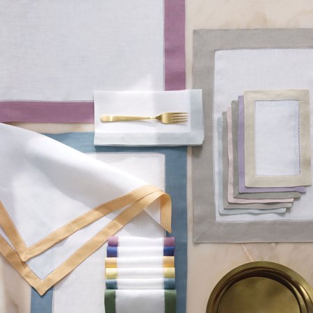 Run for the border. Borders of bold color! The Filetto cocktail napkin collection from SFERRA was expressly designed to coordinate with the solid-color Festival table linens, so you can mix-and-match beautiful table settings with ease. A pristine white center surrounded by a distinctive colored border is the height of tailored sophistication. Choose one of Festival's 101 colors as a tablecloth, and then accent it with placemats, dinner, and cocktail napkins in any of Filetto's nineteen colors. It's the perfect marriage of bold, graphic, modern style and world-renowned SFERRA quality.