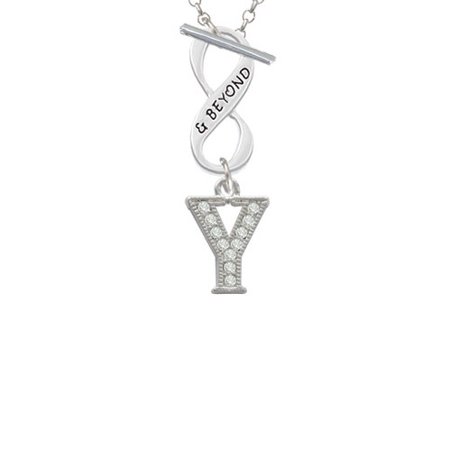 Crystal - Y - Initial - Beaded Border & Beyond Infinity Toggle Chain Necklace. Crystal, Charms. Charm size is approx. 0.68 x 0.48 x 0.1 inches (HxWxD) including loop. 3mm Rolo Chain Necklace is 18 inches long. Infinity Toggle is approx. 0.90 x 0.40 x 0.10 inches (HxWxD). The infinity symbol represents the quality of being limitless or endless. Choose your favorite message to represent your love, faith, or commitment that lasts forever. We are a family owned company in the U.S.A. since 1977. PLEASE NOTE: Our products are lead safe, but are not intended for children 14 years and younger.
