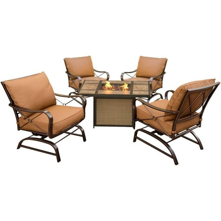 <b>Bradford 5 - Piece Tile - Top Fire Pit Set</b> <br /> <br />Provide an incredible outdoor lounging experience for your guests all year long with the phenomenal Bradford 5 - Piece Conversation Set with Tile - Top Fire Pit Table. Including four deep - seating chairs and one LP gas fire pit, this set is constructed with materials specially crafted to resist moisture and staining to stay comfortable and beautiful in outdoor conditions for years to come. The 30,000 BTU fire pit boasts a sleek design, adjustable heating settings and a decorative porcelain table top ideal for coffee or a glass of wine under the stars. Four deep - seating chairs provide superior comfort and a gentle rocking motion. <br /> <br />Beautiful, comfortable and inviting, this expertly - crafted outdoor furniture is sure to become a beloved fixture in your back yard for years to come.