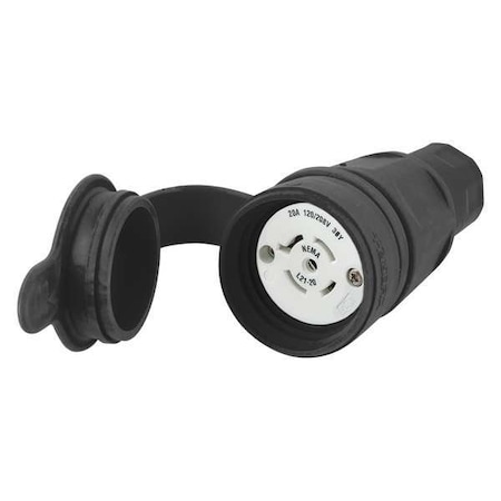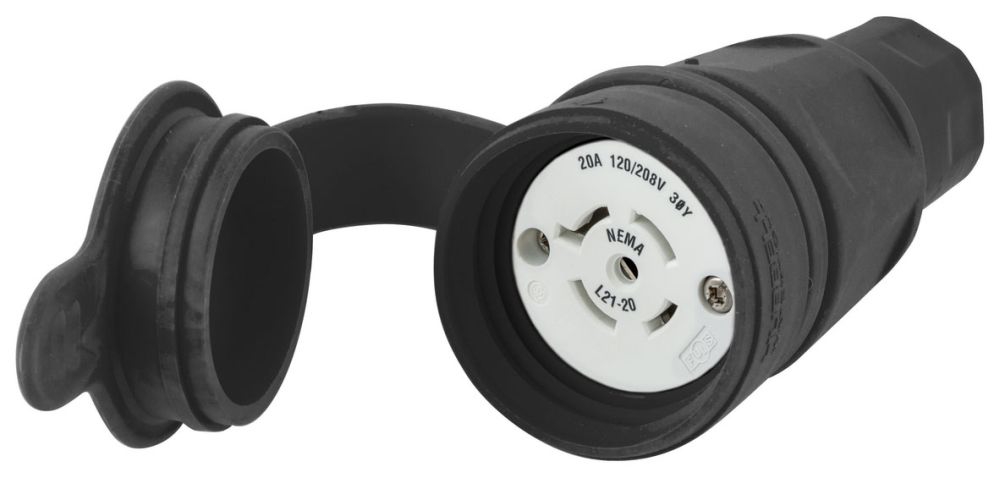 - The product type is Watertight Devices, Twist-Lock Connector, 20A, 3 Phase WYE 120/208V AC, 4 Pole, 5 Wire, Thermoplastic elastomer, NEMA L21-20R, Black