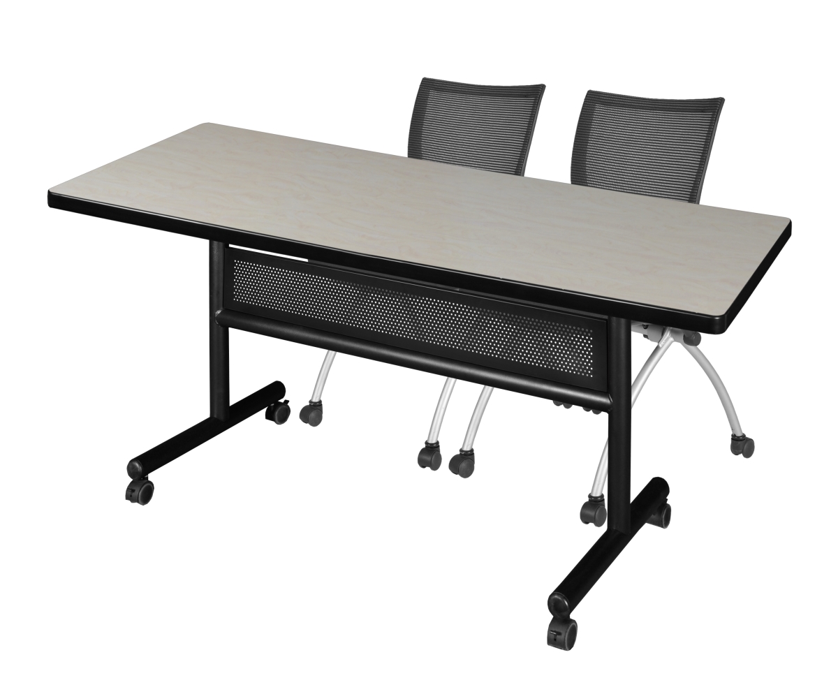 Regency MKFTM7230PL09BK 72 x 30 in. Flip Top Mobile Training Table with Modesty Panel, Maple & 2 in. Apprentice Nest