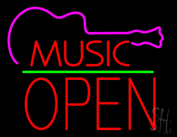 Sign Store N100-4816 Music Green Line Open Block Neon Sign, 31 x 24 x 3 In.