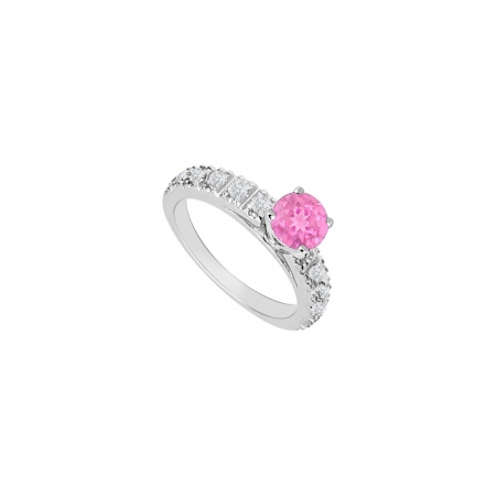 Fine Jewelry Vault UBJS656AW14DPS 14K White Gold Pink Sapphire & Diamond Engagement Ring - 1 CT TGW , 12 Stones