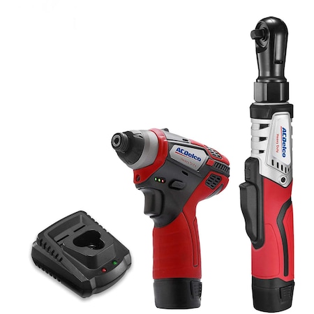 ACDelco ARW12103-K2 G12 Series 12V Li-ion Cordless 3/8” Brushless Rachet Wrench & ¼” Impact Driver Combo Tool Kit with 2 Batteries