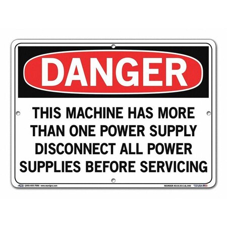 Vestil SI-D-35-C-AL-040 THIS MACHINE HAS MORE THAN ONE POWER SUPPLY DISCONNECT ALL POWER SUPPLIES BEFORE SERVICING Danger Sign, Aluminum, 0.040" Overall Size, 14.5" W x 10.5" H