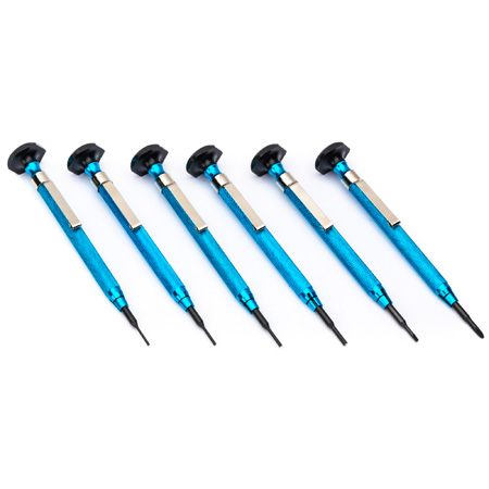 For anyone who has ever struggled with a stripped miniature screw, this unique set willbe a welcome addition to the tool box. Not only does this set include Slotted andPhillips drivers in two sizes each, but it also includes hard-to-find miniature screwextractors in four tiny sizes. Don't risk damaging your work! Six double-ended precisiontools feature hardened steel blades and blue anodized aluminum handles. Packed in aconvenient vinyl pouch.</p>