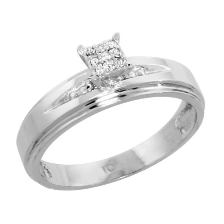 14k White Gold Diamond Engagement Ring, w/ 0.06 Carat Brilliant Cut Diamonds, 3/16 in. (5mm) wide