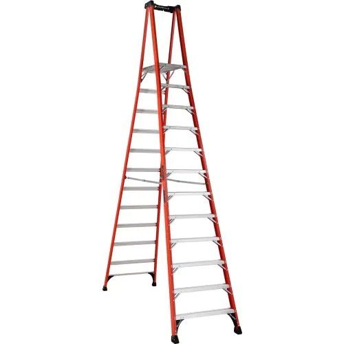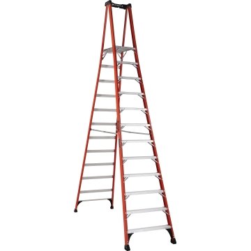 - SUPERIOR SAFETY: This 12-foot platform ladder is made of superior quality, non-conductive fiberglass, with an extended handrail on top