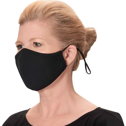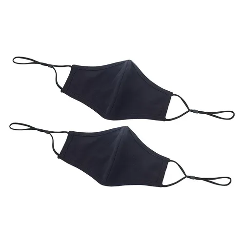 Winco Face Mask, 2-Ply, 100% Cotton, Adjustable Clip, L/XL, Black, 2pcs/pk