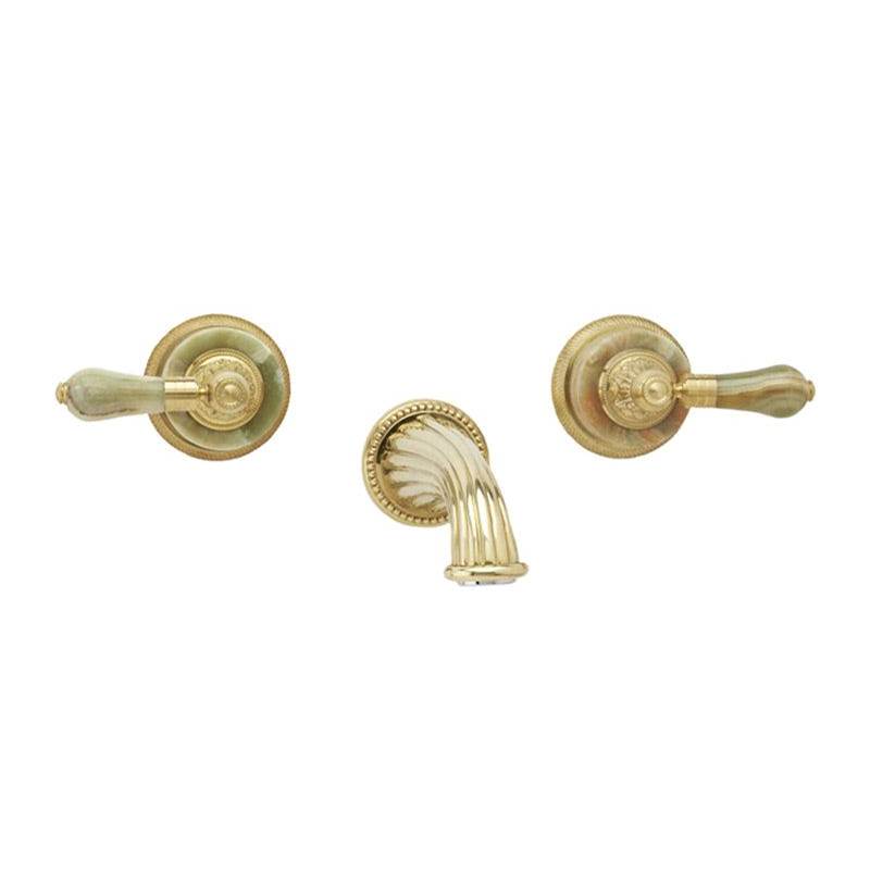 PHYLRICH K1240/05W VERSAILLES THREE HOLES WIDESPREAD WALL TUB SET WITH GREEN ONYX LEVER HANDLES, WEATHERED COPPER